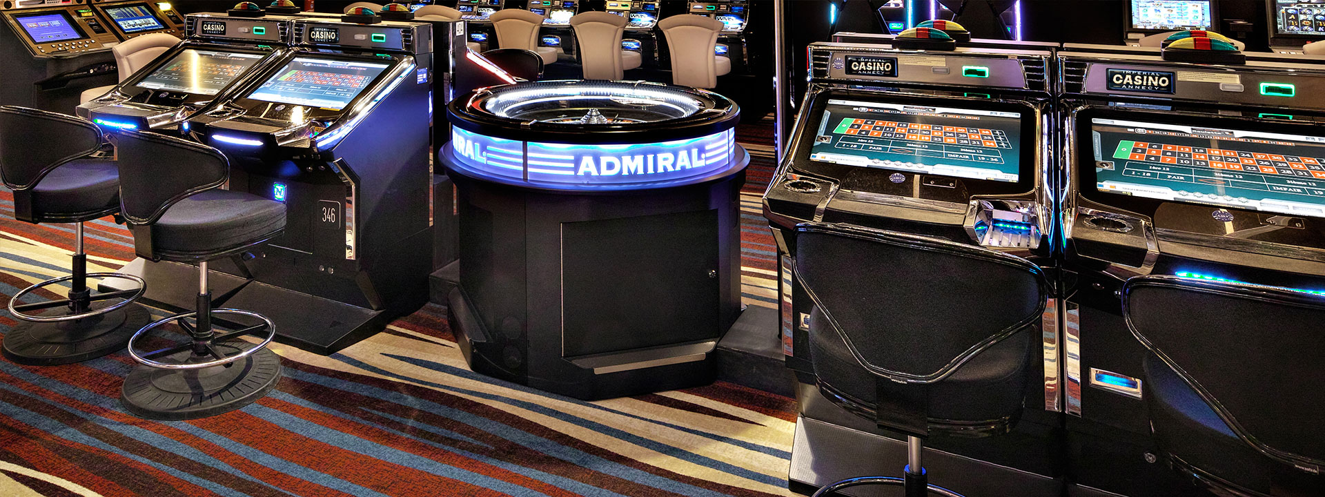 anglaise électronique et de blackjack électronique, ainsi que trois tables de jeux traditionnels : roulette
